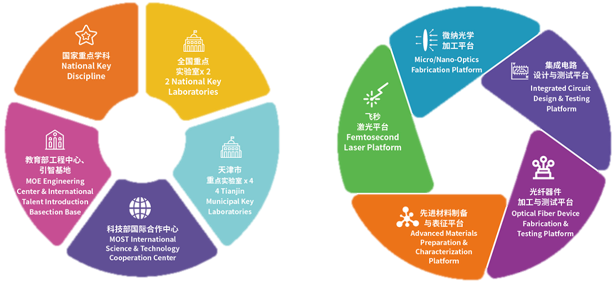 拥有光学工程国家重点学科,参建材料科学与工程国家一流学科,同时学院拥有2个全国重点实验室、1个教育部引智基地、1个教育部工程研究中心、1个科技部国际科技合作基地等高水平科研平台。现有建筑面积超过30000m² 面积,5个开放共享仪器平台价值超过4亿元,工程学全球ESI排名进入前1‰(千分之一)。
